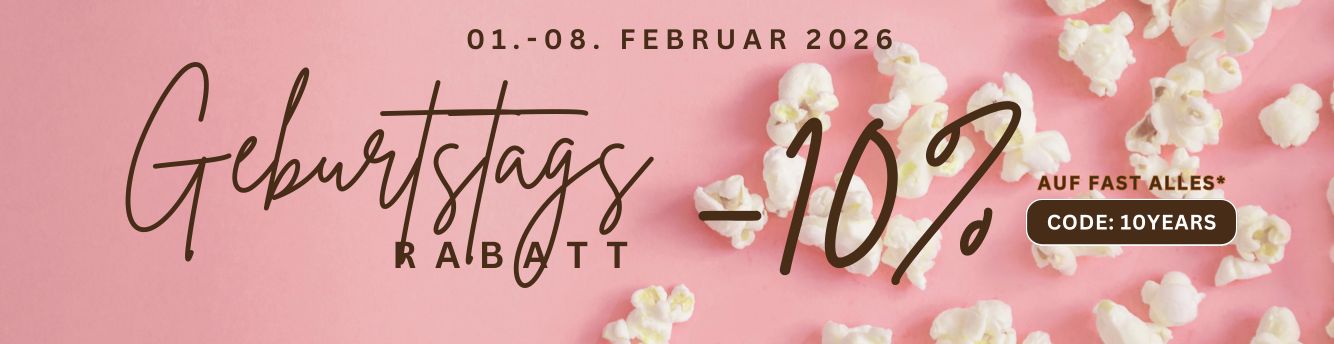 Um den Rabatt zu erhalten, geben Sie bitte im Bestellprozess den Rabattcode 10YEARS ein. Der Rabatt wird nach Eingabe des Codes im Warenkorb berücksichtigt.